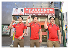 富士見市にあるみずほ台駅前整骨院では、すべての患者様に対して症状に対する施術はもちろん、お痛みやおつらさに寄り添いながら不安なお気持ちもケアすることができるように、患者様とのコミュニケーションを特に重視して日々の診療に取り組んでおります。また、当院では患者様がそれぞれ活躍するべき場所で最大限のお力を発揮できるよう、おひとりおひとりに適した施術を提案しております。